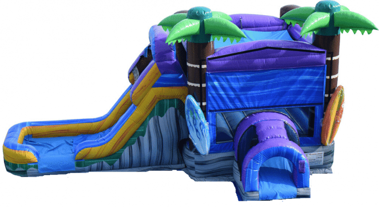 Make waves of excitement at your next event with the Blue Crush Combo 4-in-1 Large Inflatable! This thrilling attraction combines four activities into one awesome inflatable: jumping, climbing, sliding, and shooting hoops with the built-in basketball goal. Its vibrant blue and ocean-inspired design makes it a standout addition to any party, providing hours of fun for kids and teens alike. Please note, this unit is dry-only and does not use water.